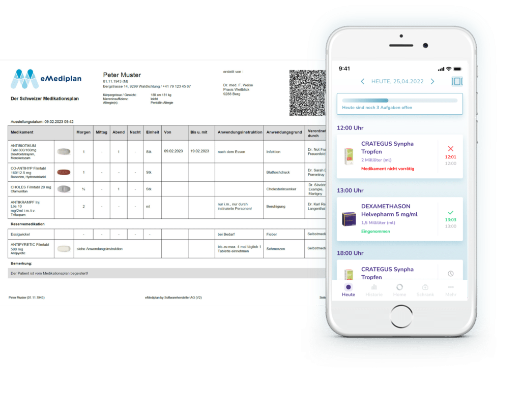 Basierend auf der Lösung von HCI Solutions AG und der Strategie und Vision der IG eMediplan haben wir den schweizweit etablierten eMediplan in unsere App integriert. Dieser Schritt stärkt unsere Kompetenz im Bereich eHealth und unterstützt das Ziel einer einheitlichen und sicheren Medikationsverwaltung für die weitere Zukunft. Patient first!